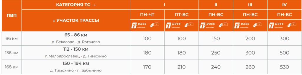 Таблица от ГК "Автодор"