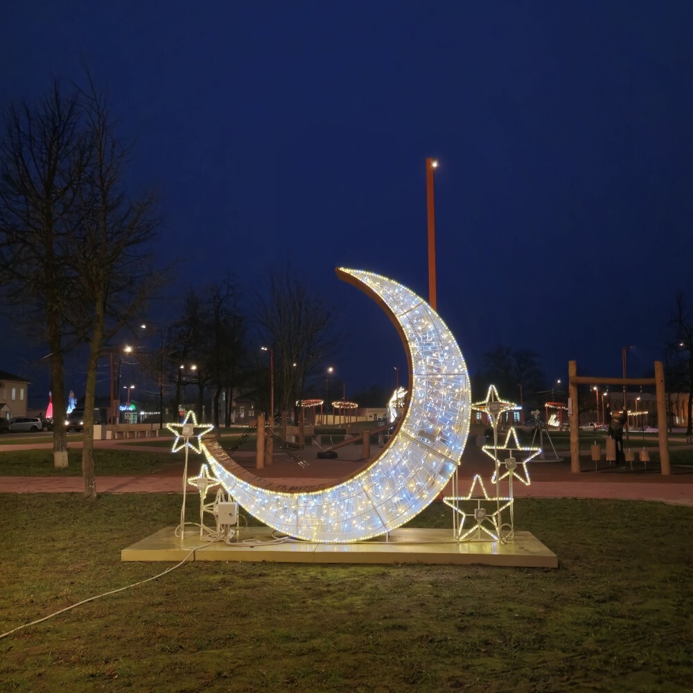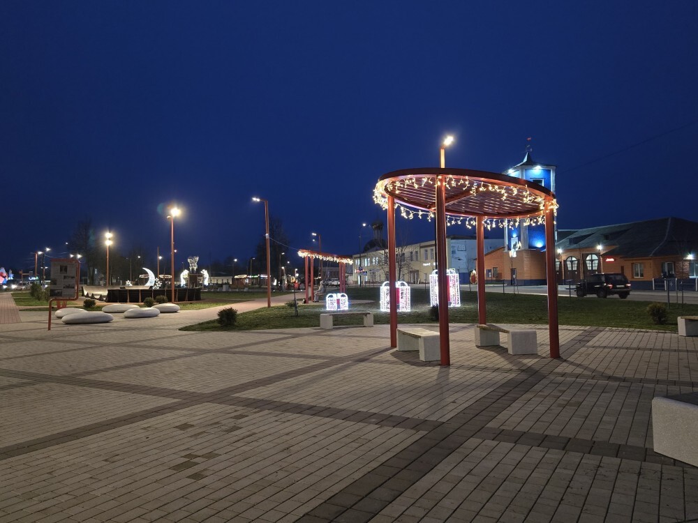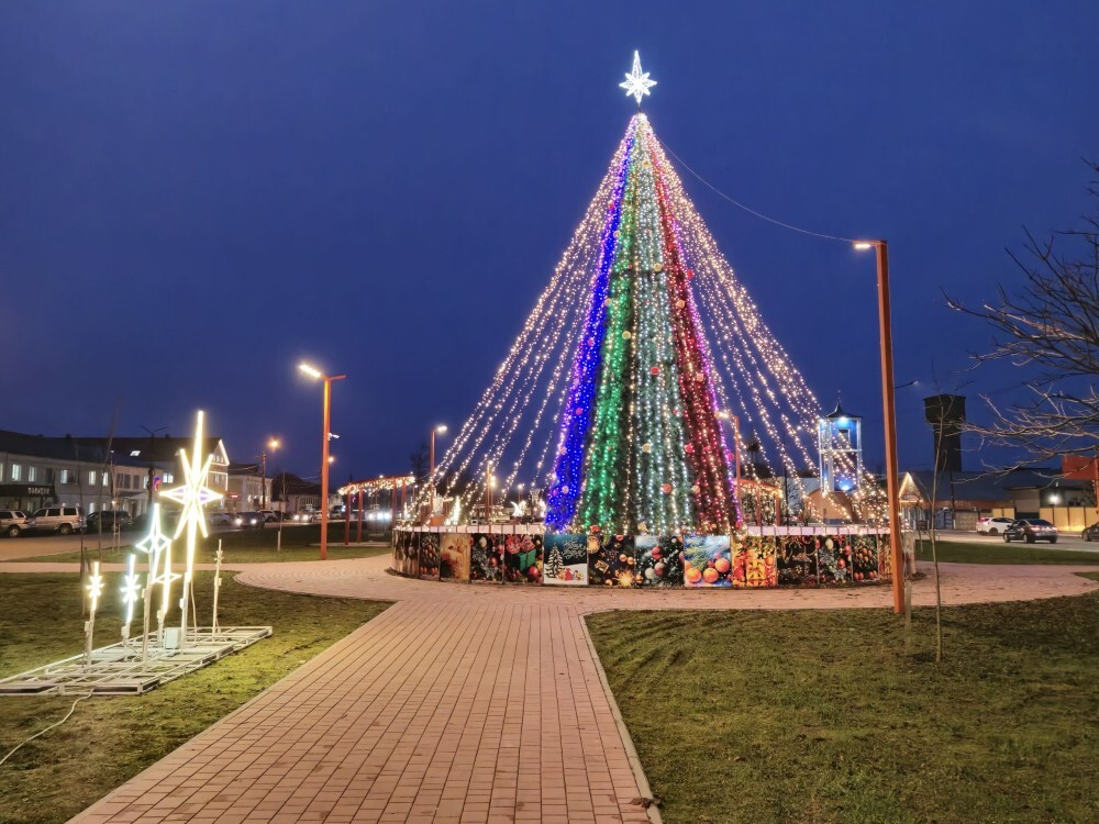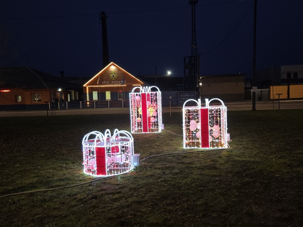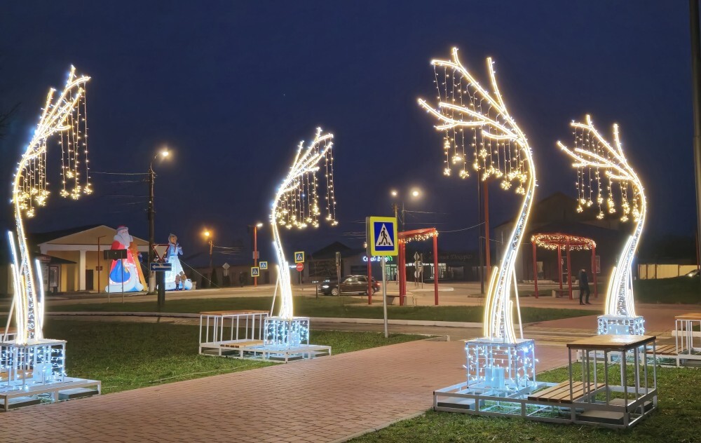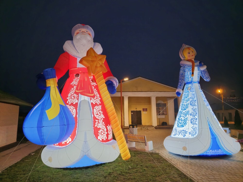 Новые праздничные инсталляции установили в ухоженном сквере им. П. Н. Самусенко, а новогодняя ёлка обрела звезду на макушке и восхитительную "фату" из светодиодов. У краеведческого музея установили фигуры Деда Мороза и Снегурочки.