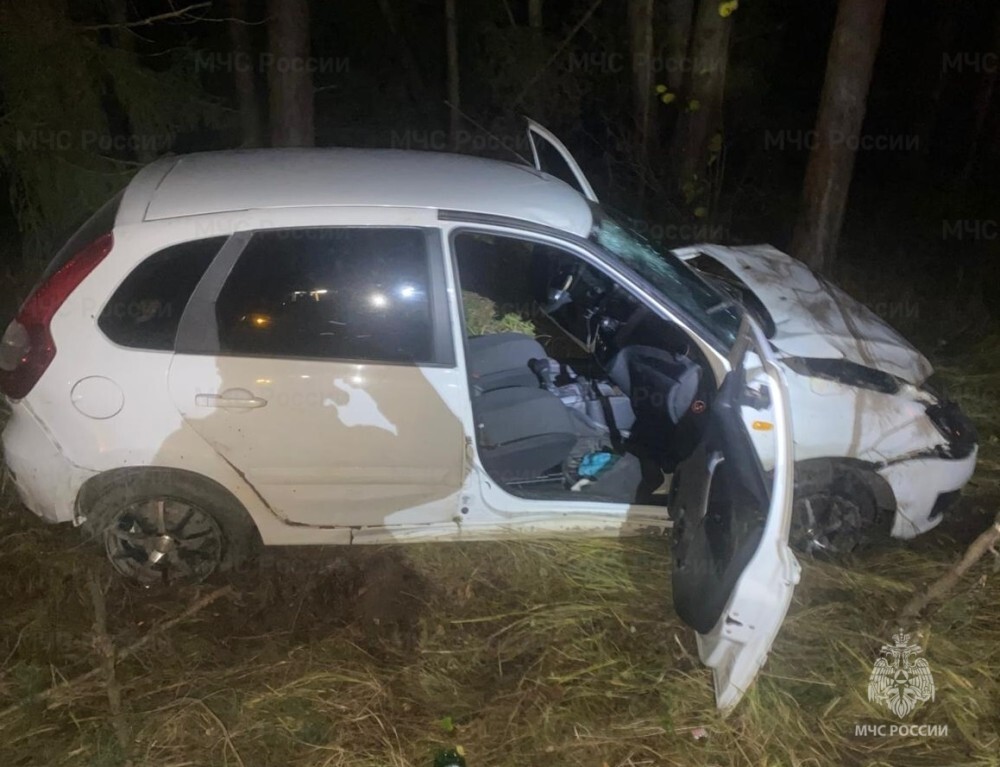 "Лада Калина" вылетела в кювет с калужской дороги