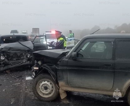 Утром на туманной дороге разбились две "Нивы"