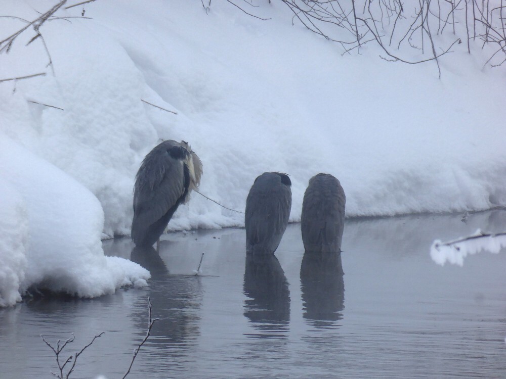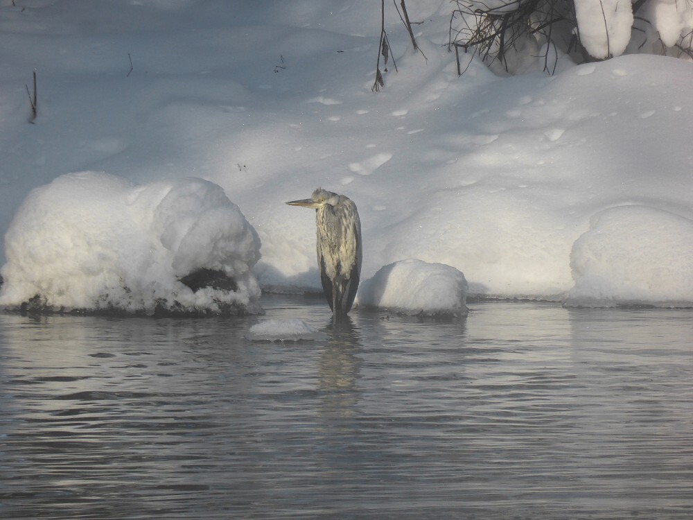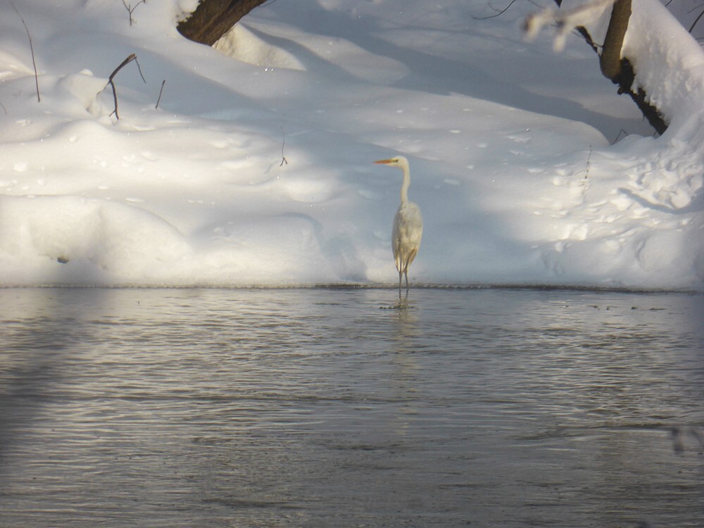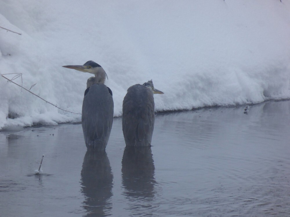 В нашем регионе уже 31 год подряд проводят учёт зимующих водоплавающих и околоводных птиц. Кроме обычных уток можно встретить и не совсем типичных для нашей зимы лебедей, зимородков, водяных пастушков, камышниц. А 25 января при обследовании незамерзающей реки Вырки под Калугой Юрий Галчёнков встретил цапель сразу двух видов: 4 серые и 1 большую белую.