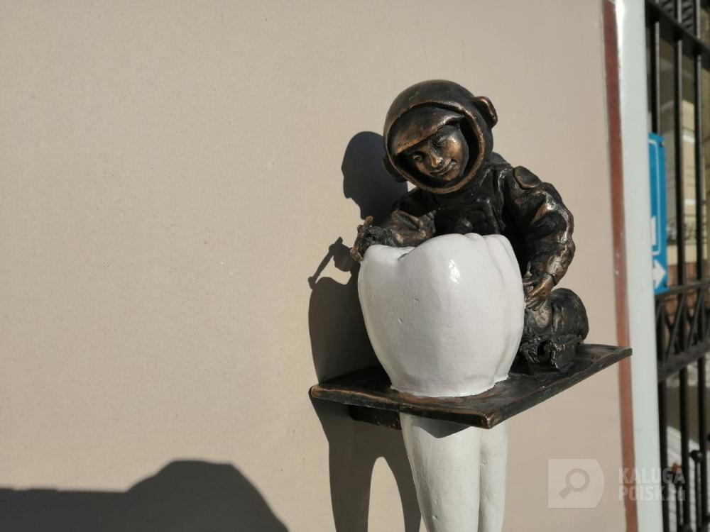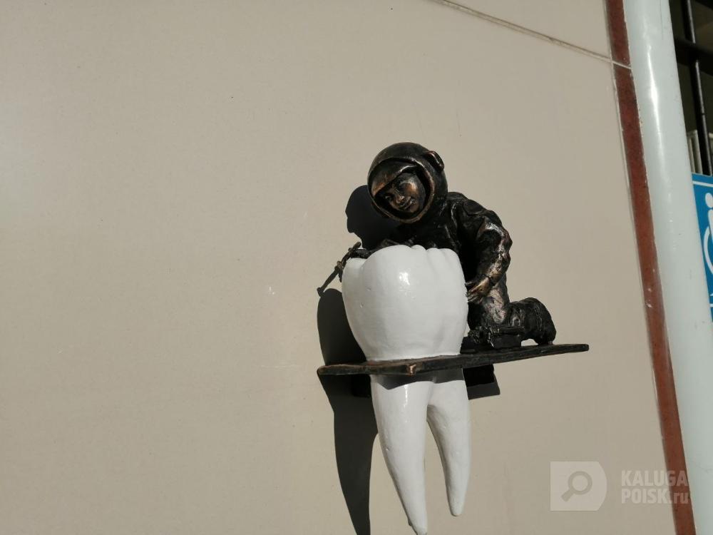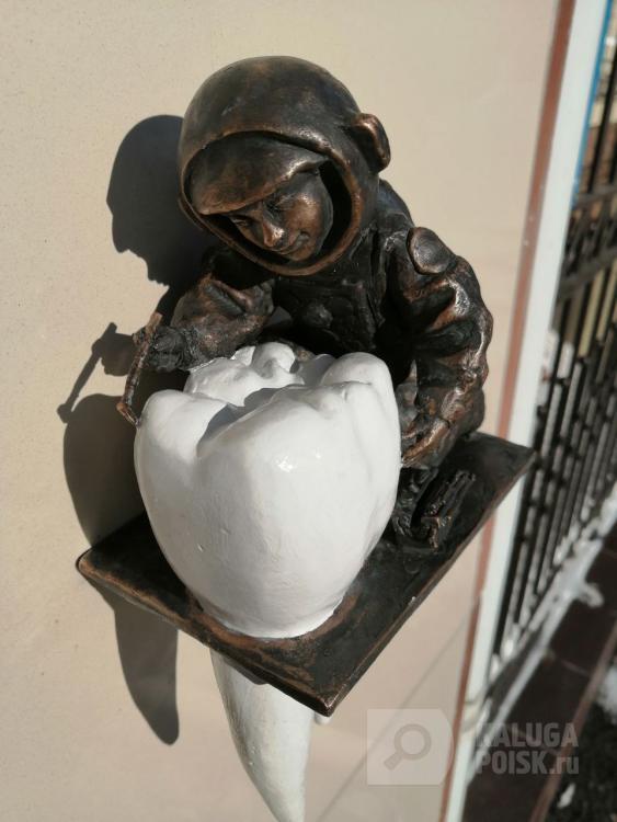 Уже 34-й космонавтик появился в Калуге. Космопупс разместился у D.S. стоматологии, которая располагается в доме №51 по Пролетарской улице.