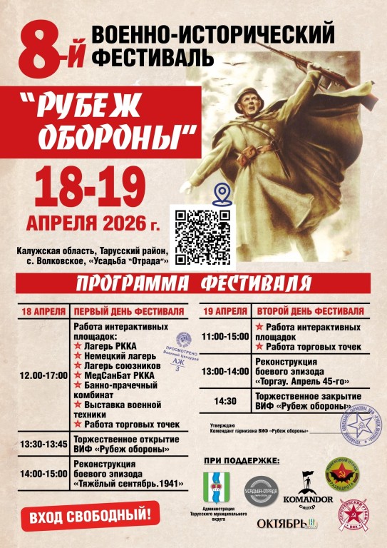 18 и 19 апреля в Тарусском округе проведут VIII военно-исторический фестиваль "Рубеж обороны".