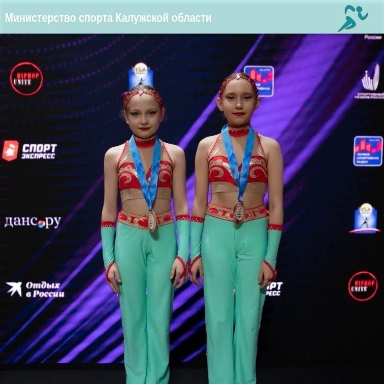 Бронзовые награды получили дуэт Таисии Хандориной и Марии Ефимовой из "Кванта" в степ-дуэте (10-13 лет), а также команда "Калужаночка" из "Невесомости" в аэробике (14-17 лет).