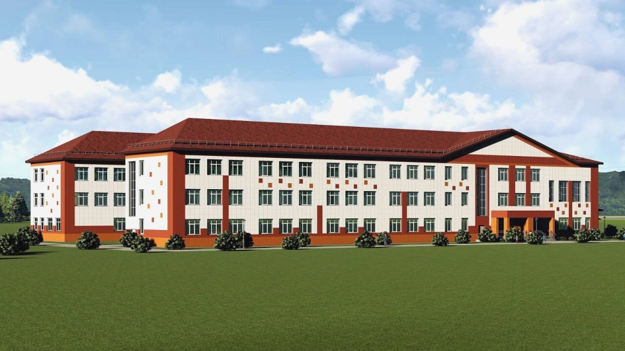 Подрядчик отчитался о ходе и планах работ. Школа на 300 учеников получит современные спортплощадки, стадион, волейбольное и баскетбольное поля. В здании уже возводят первый этаж.